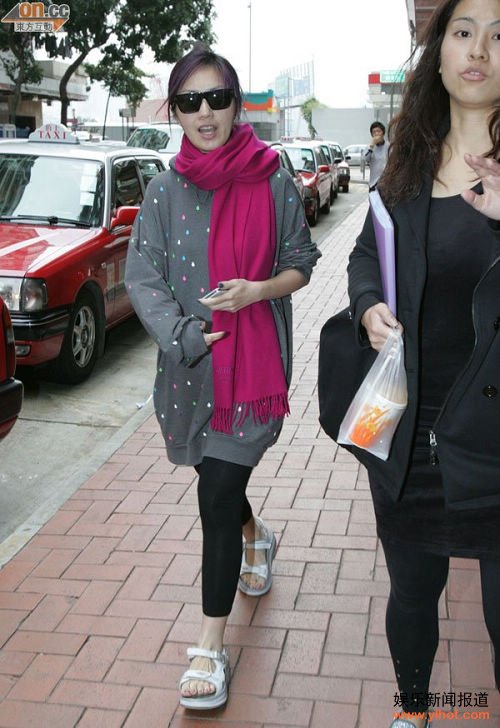 杨千嬅与老公丁子高积极造人成功,怀孕两个月。怀着小「高杨」的千嬅日前小心翼翼到北角看中医,穿上松身衫和平底脚,全程由助手扶着。发现记者后立即紧张护肚,助手护驾,千嬅说:“唔使急,上堂啫!”但未有透露上甚么堂。